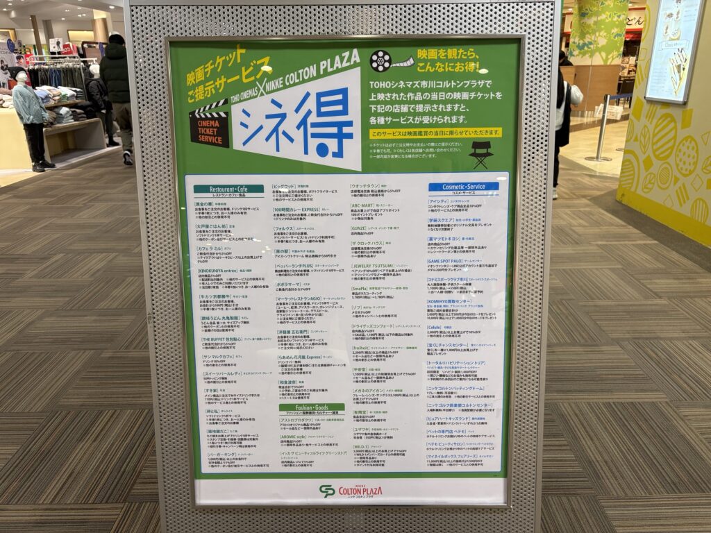 【コルトンプラザのシネ得】TOHOシネマズ市川の映画半券で受けられる割引特典まとめ