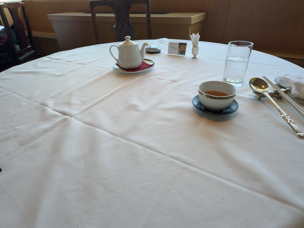 真っ白いテーブルクロス、お茶がポットで出てくる