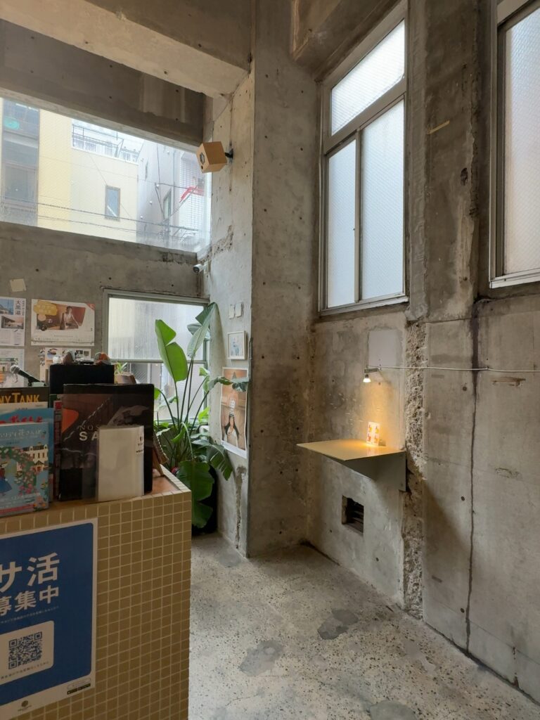 この入り口部分ではオリジナルグッズを購入することができたり、お風呂上がりにビール、レモンスカッシュなどドリンクも楽しめます。