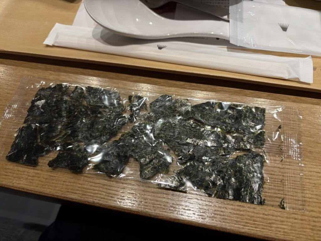 今まで知らなかったけど、付属ののりは袋を開けてから手でちぎるのではなく、袋の上からくだいて使うらしい。全然知らなかった、便利。そしてパリパリで美味しい。